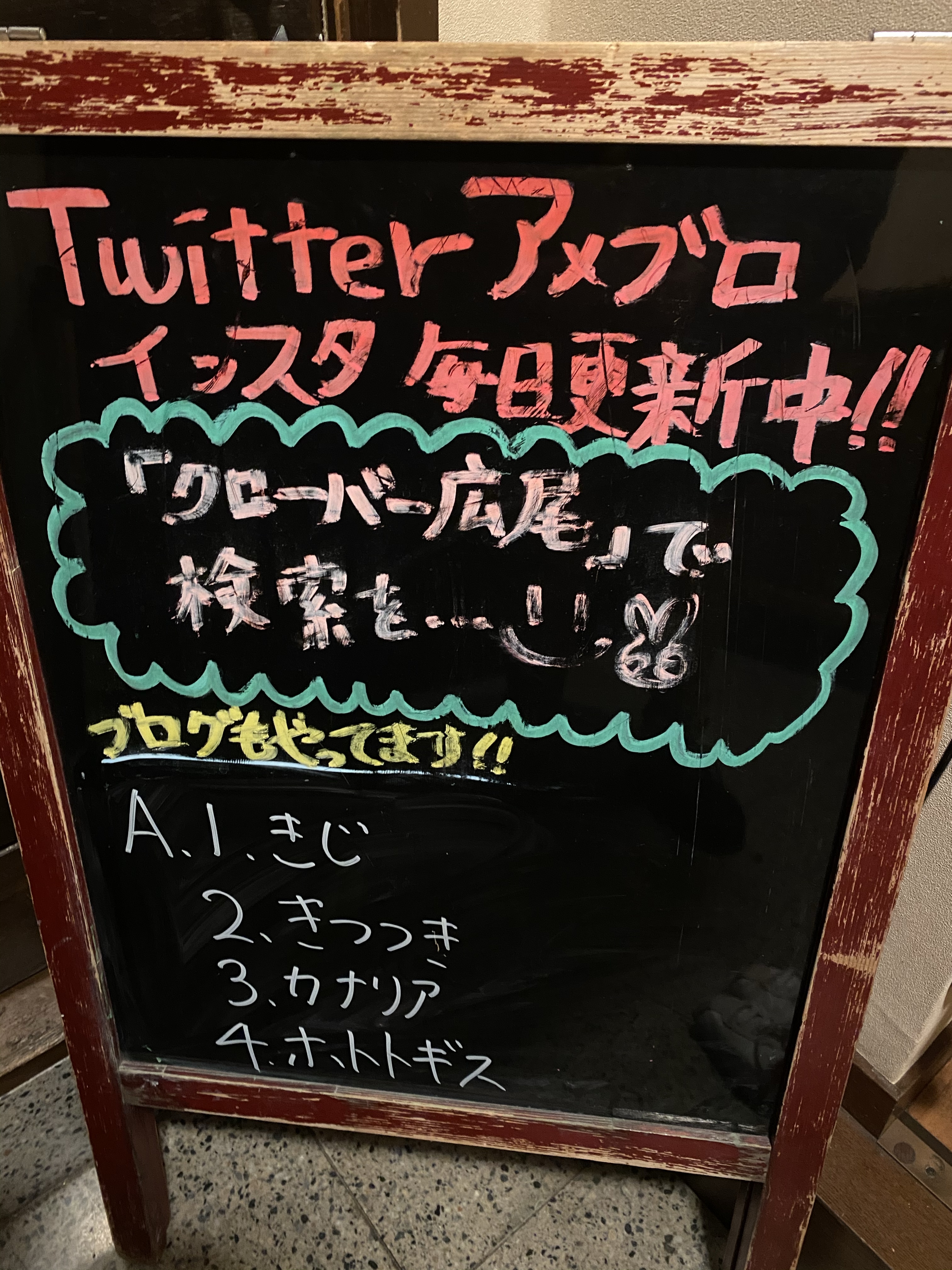 デイサービスクローバー 広尾2020.11.03 デイサービスクローバー 広尾 ハイテンション ローテーション ツイート シェア はてブ 今朝のイーゼルクイズの答えです。 全部 おわかりに なりましたか? クローバーグループでは 事業所同士 部門同士で 「ジョブローテーション」を行なっています。 目的は成長の為で、 1事業所だけでは経験出来ない介助や業務を経験することで、早期に知識やスキルを向上を目指す為です。 とのこと。 と、いうことは。 慣れた日常 見慣れた風景が 急に変わることも? いろいろですね。 あのN ツイート シェア はてブ ツイッターで@day_clovergroupをフォローする
