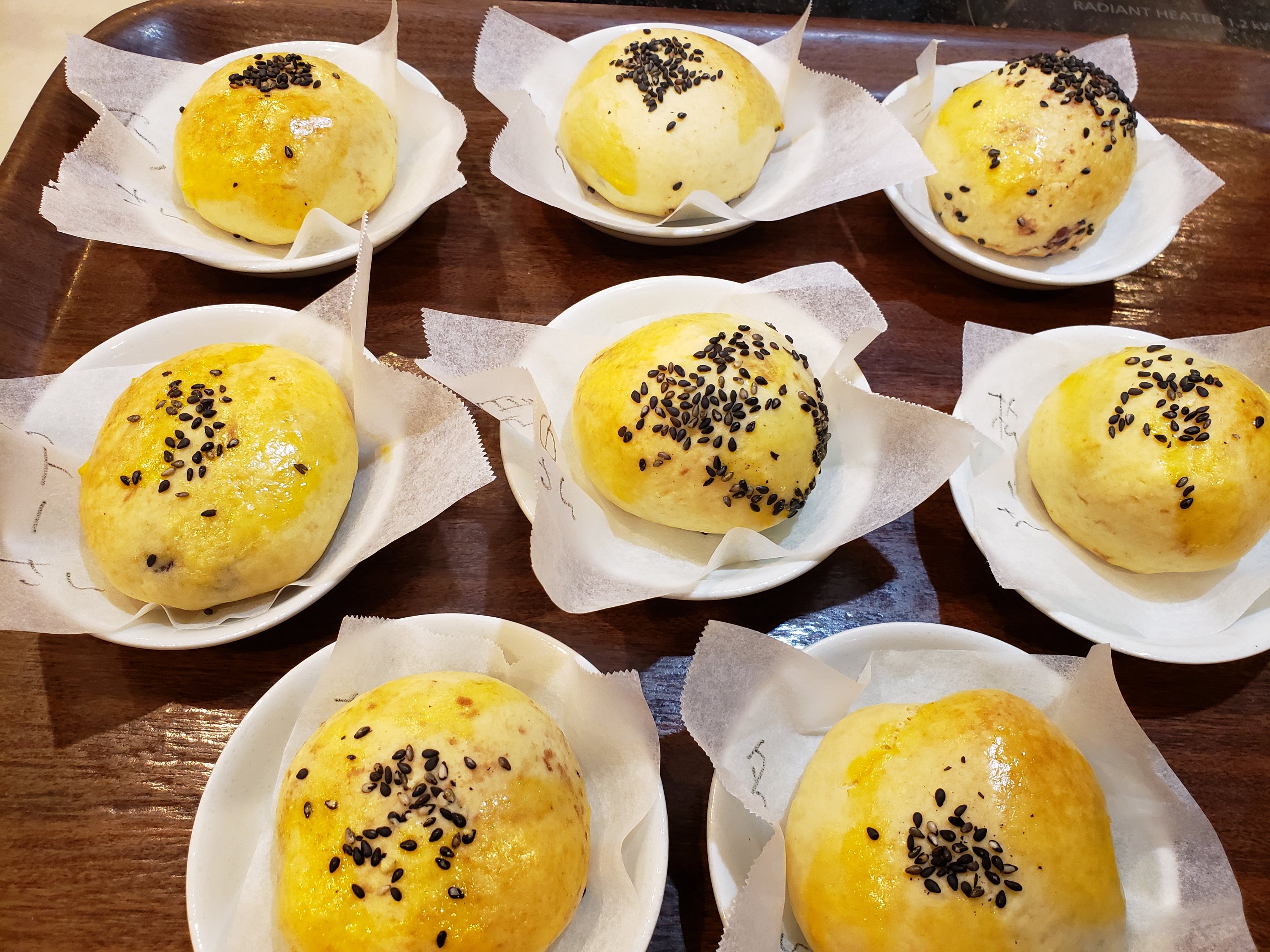 はい、170°のオーブンで25分。焼きます。あ、黒ごまと溶き卵を塗るのを忘れずにね。