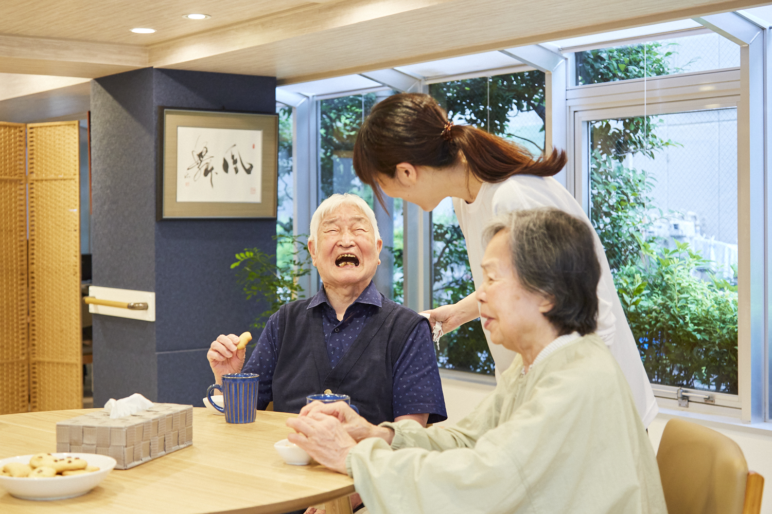 相手の大切なことを大切にし、ちょっとした変化に気づけるコミュニケーション力を重視しているため、介護業界での経験の有無は問いません。月1回の全体会議やサークル、LINEグループなどを通してスタッフ同士のコミュニケーションが良好な点も魅力のひとつ。施設は東京23区を中心に駅からアクセスしやすいところにあり、スタッフが休んでもヘルプに行ける体制が整っています。モチベーションを上げて“人のために”助け合える風土で、