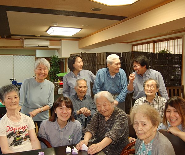色々な研究の結果から元気で長生きしている方の特徴は「自分の事は自分でする」「人との交流が頻繁にあること」です。自分で料理をつくり、掃除や洗濯して、テレビを見たり、散歩したり、人とお茶をしたり、そういった日常の当たりまえのような生活を送ることが元気の秘訣です。また、施設では10名程度の人数で自宅のような雰囲気で暮らすことが良いという結果も出ています。